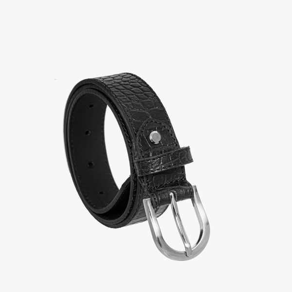 Skórzany pasek damski w kolorze czarnym.Wykonany ze skóry licowej.Zapinany na srebrną klamrę.Szerokość: 3 cm.Długość paska mierzona jest od środkowej dziurki do klamry.Istnieje możliwość skrócenia paska w salonie Ryłko.Może zawierać śladowe ilości niklu.Dystrybutor: Brawo Sp. z o.o. ul. Dworcowa 19, 34-130 Kalwaria Zebrzydowska; [email protected] pochodzenia: CHINY