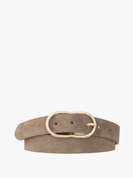 Ciemnobeżowy welurowy pasek damski ze złotą klamrą
