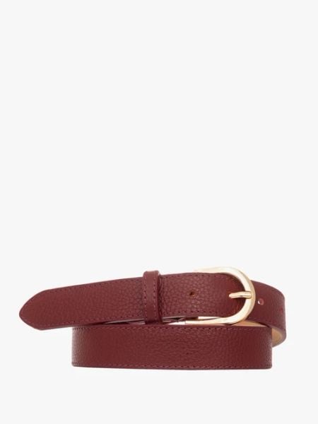 Bordowy skórzany pasek damski.Wykonany ze skóry licowej.Zapinany na złotą klamrę.Szerokość: 3 cm.Długość paska mierzona jest od środkowej dziurki do klamry.Istnieje możliwość skrócenia paska w salonie Ryłko.Może zawierać śladowe ilości niklu.Dystrybutor: Brawo Sp. z o.o. ul. Dworcowa 19, 34-130 Kalwaria Zebrzydowska; [email protected] pochodzenia: WŁOCHY