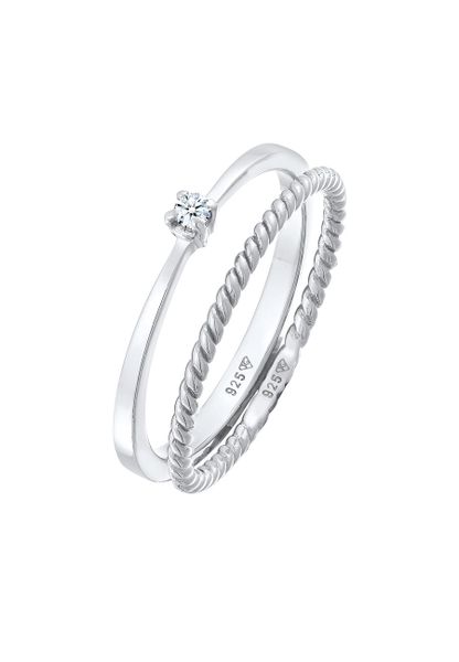 Elli DIAMONDS Damski zestaw soliter 2 częściowy skręcony z diamentem (0.03 ct.) w srebrze 925 Sterling Silver Pierścionki 1 ct