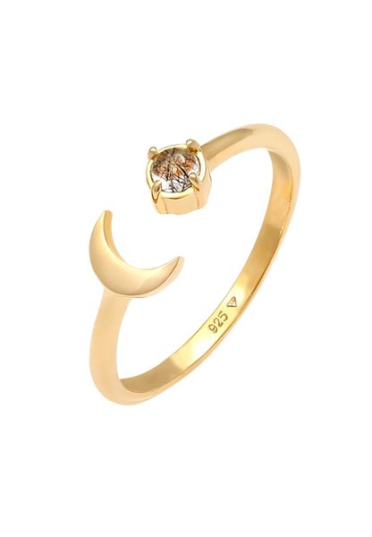Elli Ladies Moon with Tourmaline Quartz Stone Spiritual Astro in 925 Sterling Silver Plated. Pierścionki 1 ct Damski