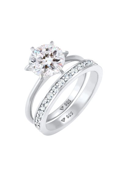 Elli Damska obrączka zestaw soliter glamour z kryształami w srebrze próby 925 Sterling Silver Pierścionki 1 ct Damski