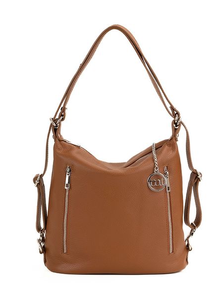 – materiał: skóra bydlęca- krótki pasek na ramię: regulowany- zapięcie: suwak- kieszenie zewnętrzne: tak, na zamek- kieszenie wewnętrzne: 1 kieszeń na zamek, 1 kieszeń otwarta- detale: zawieszka- tekstylna podszewka: tak- można nosić jako plecak