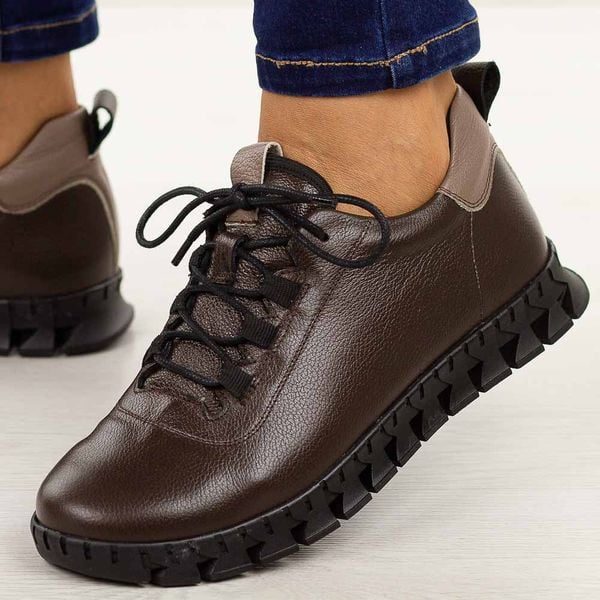 Czekoladowe skórzane Polskie półbuty damskie Aga 2372