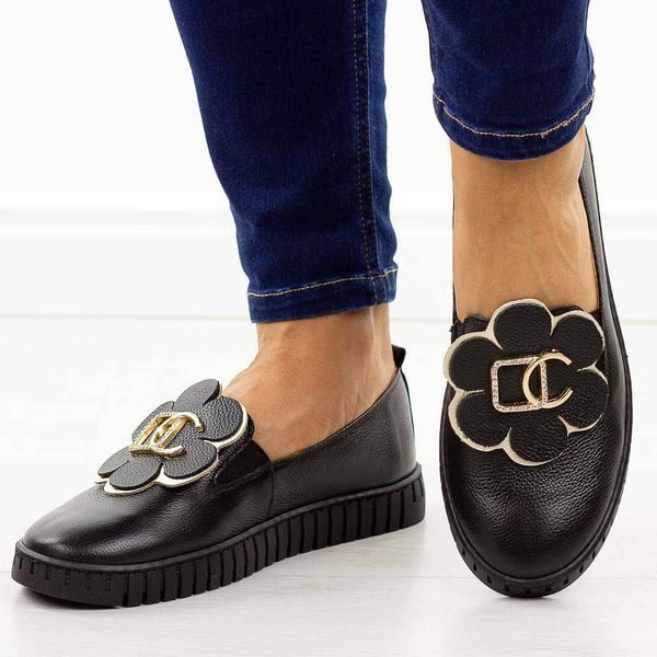 Czarne skórzane półbuty damskieto idealny wybór na wiosnę, lato i jesień. Wykonane z wysokiej jakości skóry naturalnej, łączą elegancję i wygodę, sprawdzając się zarówno w codziennych, jak i bardziej wyjściowych stylizacjach. Cholewka ozdobiona jest efektowną aplikacją w kształcie kwiatka ze złotymi dodatkami, co dodaje butom wyjątkowego charakteru. Wsuwany model z okrągłym noskiem zapewnia komfort noszenia […]