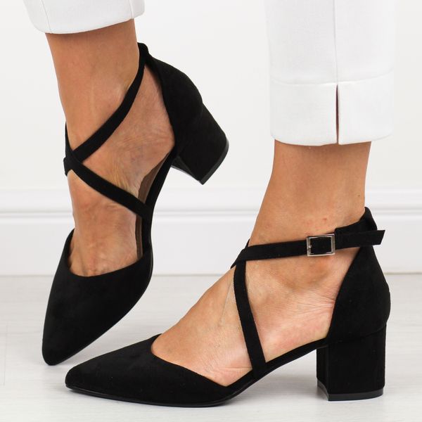 Czarne zamszowe sandały damskie na obcasie z zakrytymi palcami i pietą Sergio Leone Sk830