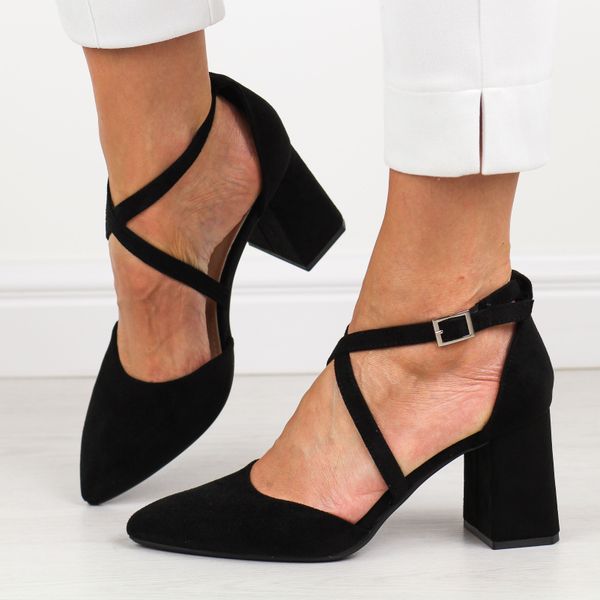 Czarne zamszowe sandały damskie na słupku z zakrytymi palcami i pietą Sergio Leone Sk840