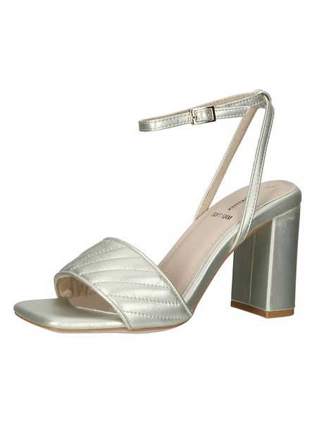 – zapięcie: sprzączka- noski: otwarte- powierzchnia: metalicznie błyszcząca – forma obcasa: blokowy- podeszwa: antypoślizgowa