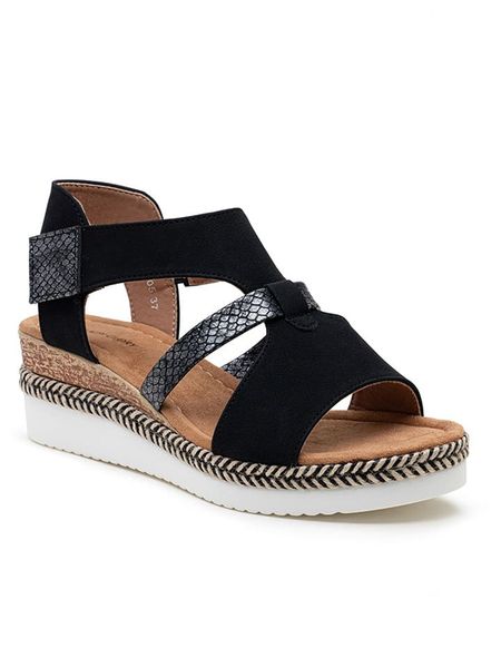 – zapięcie: rzep- noski: otwarte- obcas: koturny z platformą z przodu- podeszwa: antypoślizgowa