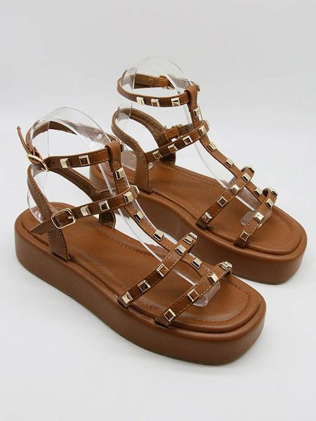 – zapięcie: sprzączka- noski: otwarte- detale: ozdobne nity- forma obcasa: platforma- podeszwa: antypoślizgowa