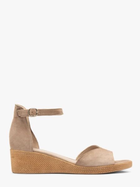 Beżowe sandały na platformie z linii RYŁKO RELAX.Model wykonany ze skóry welurowej.Podszewka i wyściółka skórzana.Ozdobny klin + platforma o wysokości 4,5 cm.But posiada ozdobną klamerkę w kolorze srebrnym i gumową wstawkę w cholewce.Dystrybutor: Brawo Sp. z o.o. ul. Dworcowa 19, 34-130 Kalwaria Zebrzydowska; [email protected] pochodzenia: POLSKA
