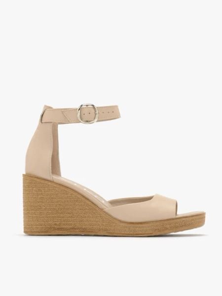 Sandał w kolorze beżowym z linii RYŁKO.Model wykonany ze skóry licowej.Podszewka i wyściółka skórzana.Ozdobny klin + platforma o wysokości 8 cm.But posiada ozdobną klamerkę w kolorze srebra.R. SMOOTH – obszerne zmiękczenie umieszczone pod skórzaną wyściółką dopasowuje się do stopy i zapewnia najwyższy komfort użytkowania.