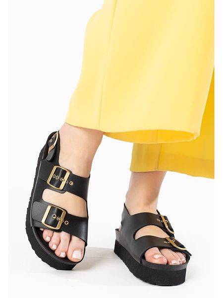 – zapięcie: sprzączka- noski: otwarte- skórzana wkładka: ergonomicznie formowana- forma obcasa: platforma- podeszwa: antypoślizgowa