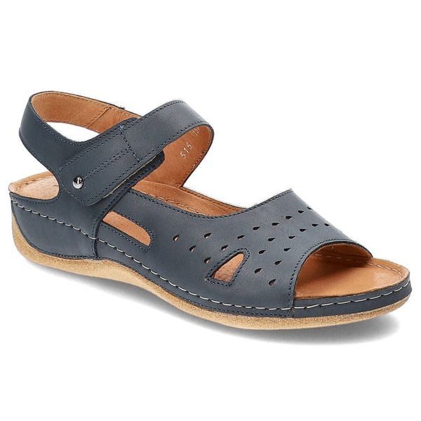 Granatowe Sandały Pollonus Damskie Skórzane Obuwie