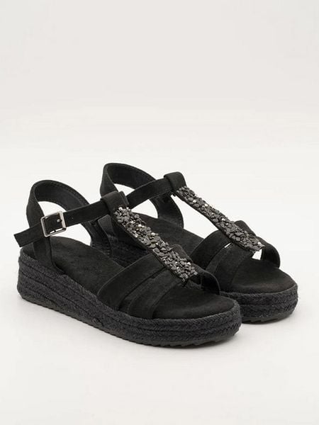 – zapięcie: sprzączka- noski: otwarte- detale: ozdobne koraliki- obcas: koturny z platformą z przodu- podeszwa: antypoślizgowa