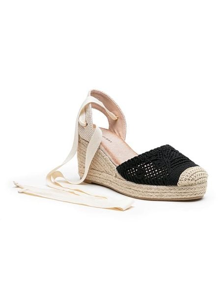 – zapięcie: sznurowanie- noski: zaokrąglone- detale: plecionka- obcas: koturny z platformą z przodu- podeszwa: bez profilu