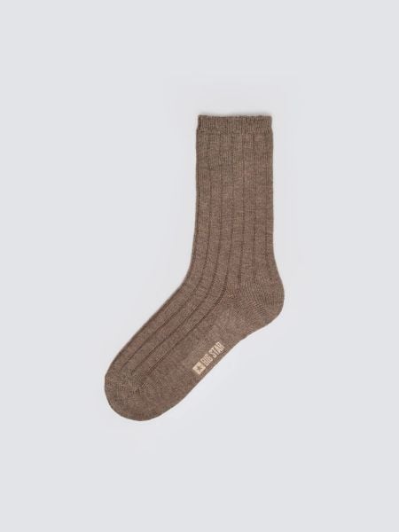 Skarpety damskie prążkowane z dodatkiem wełny brązowe Malena 804