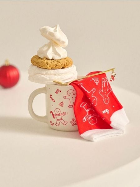 Sinsay – Zestaw: kubek i skarpetki z motywem świątecznym – wielobarwny –