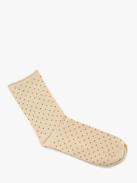 Beżowe skarpety bawełniane z brązowymi kropkami. Bezuciskowe.Skład: bawełna certyfikowana Oeko Tex 75%, poliamid 20%, elastan 5% Dystrybutor: Brawo Sp. z o.o. ul. Dworcowa 19, 34-130 Kalwaria Zebrzydowska; [email protected] pochodzenia: POLSKA