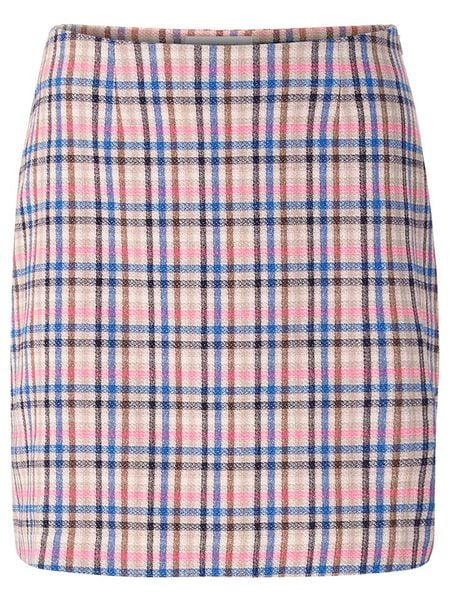 – z dodatkiem bawełny- zapięcie: boczny suwak- krój: wąski- wzór: kratka
