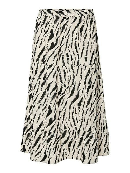 – czysta wiskoza- wysokość pasa: high waist- pas / ściągacz: elastyczny- dolny brzeg: z falbankami- krój: luźny- wzór: zebra