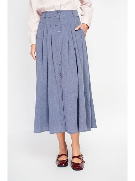 spódnice le jardin du lin niebieskie spódnice spódnice ze sklepu limango.pl odzież damska limango.pl spódnice midi odzież damska le jardin du lin