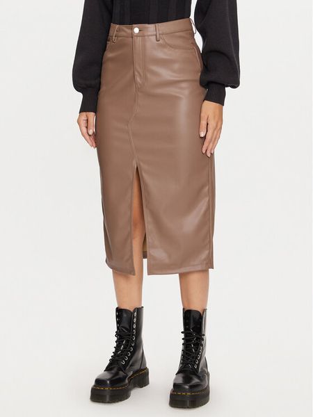 ONLY Spódnica z imitacji skóry Kiri 15324778 Brązowy Regular Fit