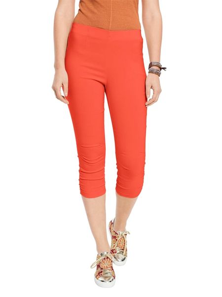 – wysokość pasa: high waist- pas / ściągacz: elastyczny- długość nogawek: capri- krój: wąski- look: jednokolorowy