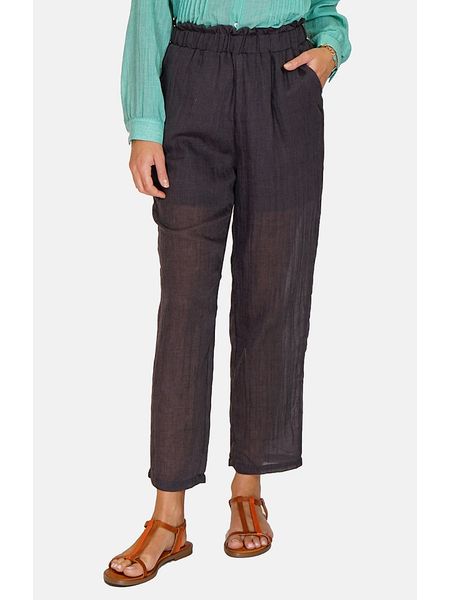 – czysty len- wysokość pasa: high waist- pas / ściągacz: elastyczny- kieszenie: wpuszczane- krój: prosty- look: jednokolorowyWskazówka: Na metkach odzieży tej marki znajdują się rozmiary francuskie. Rozmiarówka została przez nas przeliczona. Podane do wyboru warianty rozmiarów odpowiadają standardowym europejskim rozmiarom konfekcji. Prosimy zapoznać się z zamieszczonym objaśnieniem rozmiarów.
