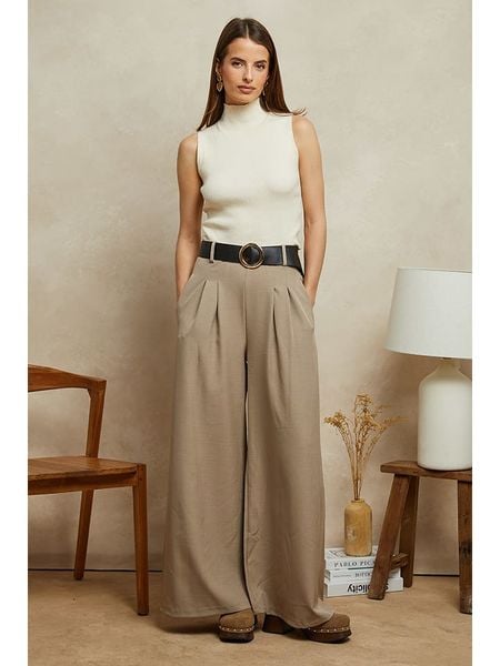 odzież damska plume spodnie z wysokim stanem plume spodnie z wysokim stanem z podwyższonym stanem spodnie z wysokim stanem ze sklepu limango.pl odzież damska limango.pl brązowe spodnie z wysokim stanem
