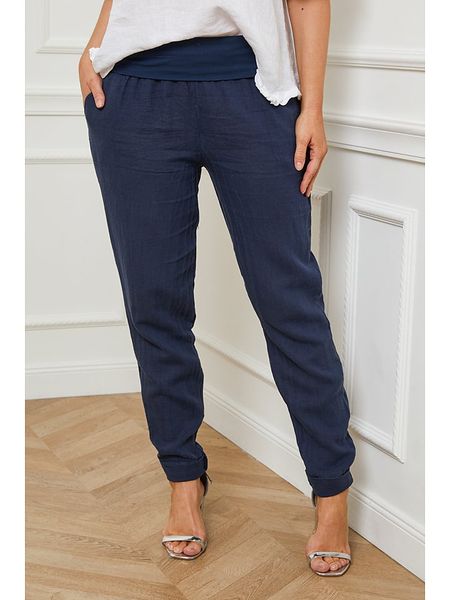 – czysty len- wysokość pasa: high waist- fason: Tapered fit- krój nogawek: wąski- pas / ściągacz: elastyczny- kieszenie: wpuszczane- look: jednokolorowyWskazówka: Na metkach odzieży tej marki znajdują się rozmiary francuskie. Rozmiarówka została przez nas przeliczona. Podane do wyboru warianty rozmiarów odpowiadają standardowym europejskim rozmiarom konfekcji. Prosimy zapoznać się z zamieszczonym objaśnieniem rozmiarów: