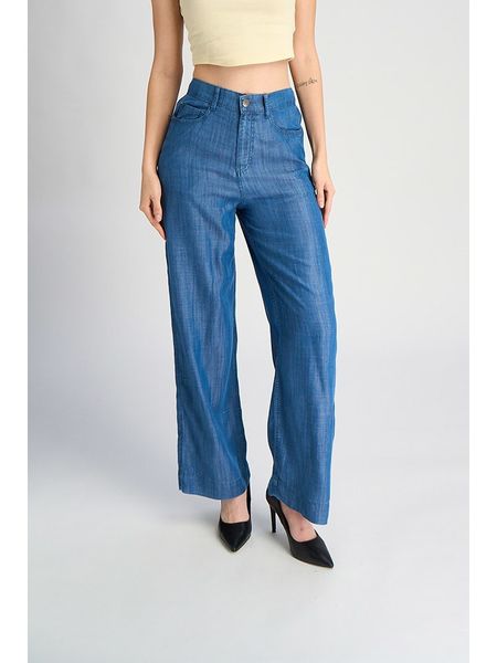 – czysty lyocell- wysokość pasa: high waist- szlufki na pasek: tak- zapięcie: guzik i suwak- kieszenie: 5 klasycznych- krój: luźny- look: jednokolorowy