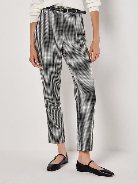 – wysokość pasa: high waist- fason: Tapered fit- krój nogawek: wąski- szlufki na pasek: tak- zapięcie: haczyk i suwak- kieszenie: wpuszczane- długość nogawek: 7/8- wzór: pepitkaUwaga: Przesyłka nie zawiera paska.