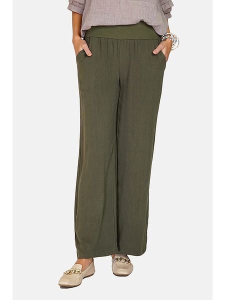 – z dodatkiem lnu- wysokość pasa: high waist- pas / ściągacz: elastyczny- kieszenie: wpuszczane- krój: luźny- look: jednokolorowyWskazówka: Na metkach odzieży tej marki znajdują się rozmiary francuskie. Rozmiarówka została przez nas przeliczona. Podane do wyboru warianty rozmiarów odpowiadają standardowym europejskim rozmiarom konfekcji. Prosimy zapoznać się z zamieszczonym objaśnieniem rozmiarów.