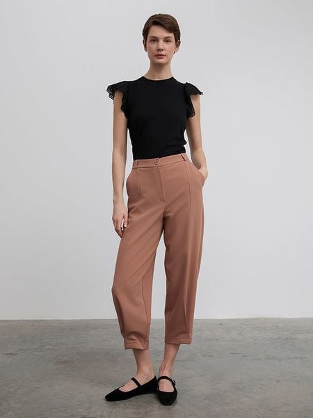 – wysokość pasa: high waist- fason: Tapered fit- krój nogawek: wąski- szlufki na pasek: tak- pas / ściągacz: elastyczny- zapięcie: guzik i suwak- kieszenie: wpuszczane- długość nogawki: 7/8- look: jednokolorowyUwaga: Przy wyborze właściwego wariantu zaleca się korzystanie z tabeli rozmiarów.