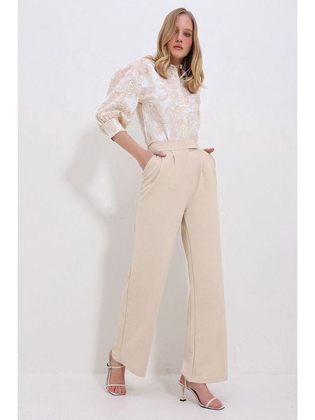 trendyol Spodnie w kolorze beżowym rozmiar: L