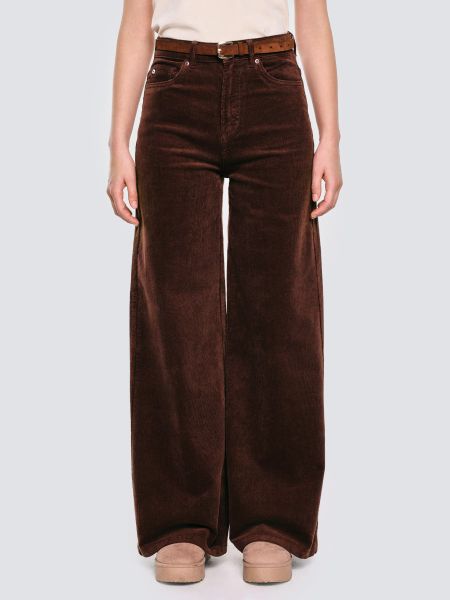 Spodnie damskie sztruksowe z szeroką nogawką ciemnobrązowe Celinesi 804