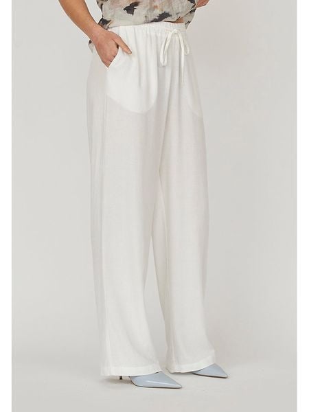 – z dodatkiem lnu- wysokość pasa: high waist- pas: ściągacz tunelowy- kieszenie: wpuszczane- krój: luźny- look: jednokolorowy