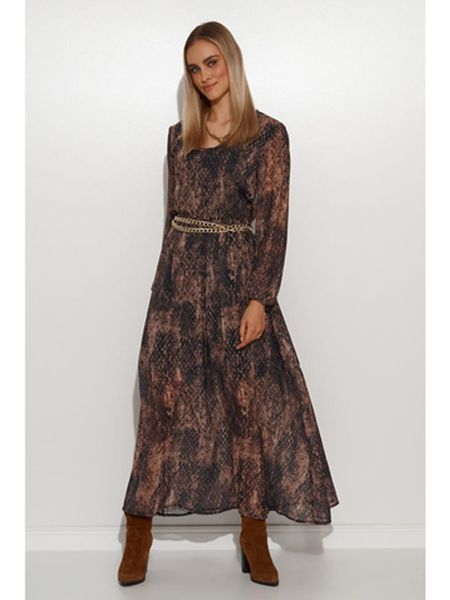 sukienki bez rękawów odzież damska makadamia sukienki bez ramiączek sukienki maxi sukienki z okrągłym kołnierzem sukienki z długim rękawem sukienki bez kołnierzyka sukienki ze sklepu limango.pl brązowe sukienki sukienki makadamia