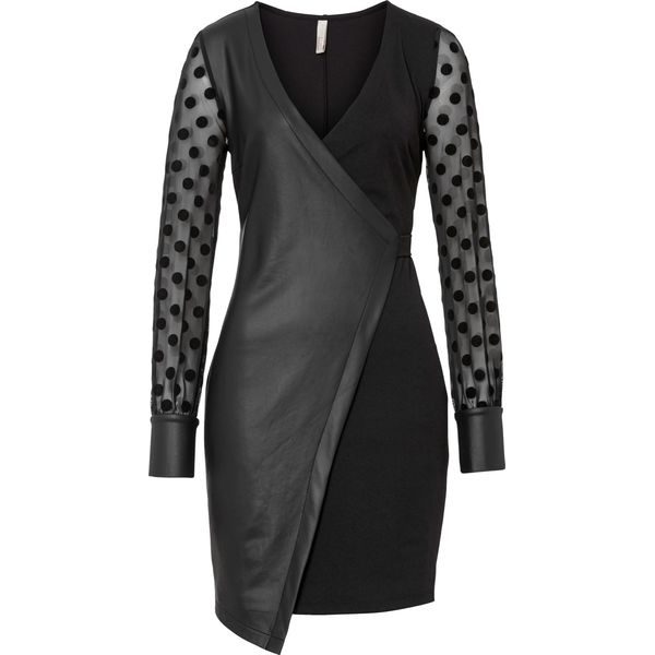 Sukienka ze sztucznej skóry, z wstawką z dżerseju i rękawami z siatkowego materiału w kropki