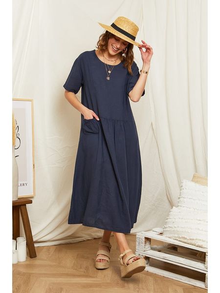 Rodier Lin Lniana sukienka w kolorze granatowym rozmiar: XL/XXL