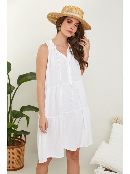 sukienki bez rękawów sukienki bez ramiączek sukienki ze sklepu limango.pl odzież damska limango.pl sukienki rodier lin białe sukienki sukienki midi sukienki bez kołnierzyka odzież damska rodier lin