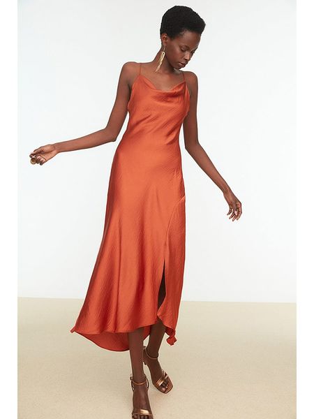 sukienki trendyol sukienki bez ramiączek brązowe sukienki sukienki bez kołnierzyka sukienki ze sklepu limango.pl odzież damska limango.pl odzież damska trendyol sukienki bez rękawów sukienki midi