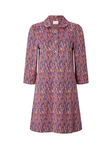 – kołnierz: kent- zapięcie: skrócona listwa guzikowa- długość rękawa: półdługi- krój: prosty- wzór: na całości