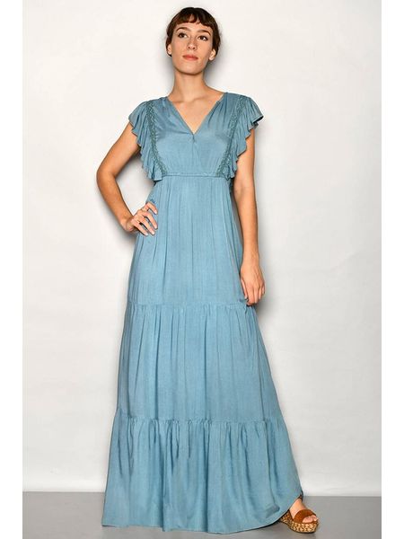 sukienki rozkloszowane sukienki tarifa sukienki bez rękawów sukienki bez kołnierzyka sukienki maxi sukienki z falbankami sukienki ze sklepu limango.pl odzież damska tarifa odzież damska limango.pl niebieskie sukienki