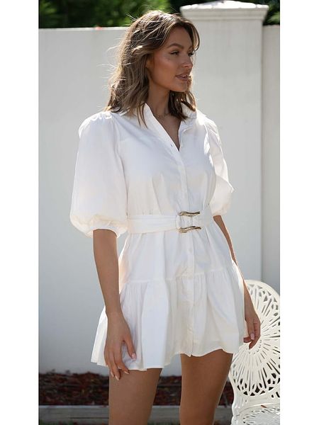 – czysta bawełna- kołnierz: kent- zapięcie: listwa guzikowa- rękaw: bufiasty- zdejmowany pasek: tkanina- dolny brzeg: z falbankami- krój: rozkloszowany- look: jednokolorowyUwaga: Przy wyborze właściwego wariantu zaleca się korzystanie z tabeli rozmiarów.