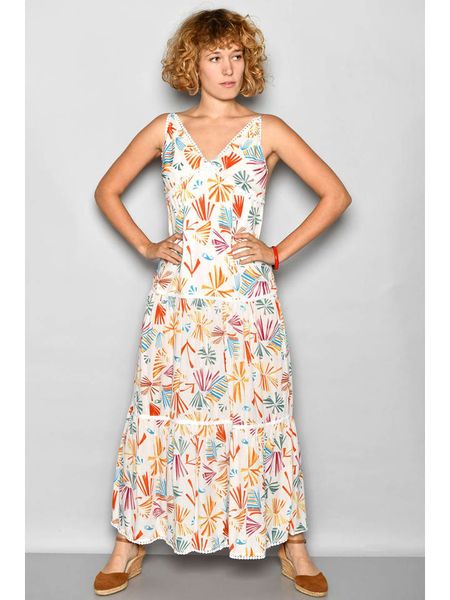 – czysta wiskoza – ramiączka: wąskie – dekolt: V – dolny brzeg: z falbanami – krój: luźny – wzór: na całości