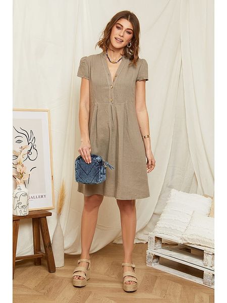 Rodier Lin Lniana sukienka w kolorze szarobrązowym rozmiar: S/M
