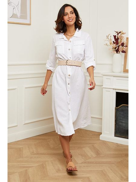 sukienki bez rękawów białe sukienki sukienki maxi sukienki bez ramiączek odzież damska le monde du lin odzież damska limango.pl sukienki z klasycznym kołnierzykiem sukienki ze sklepu limango.pl sukienki le monde du lin sukienki rozkloszowane