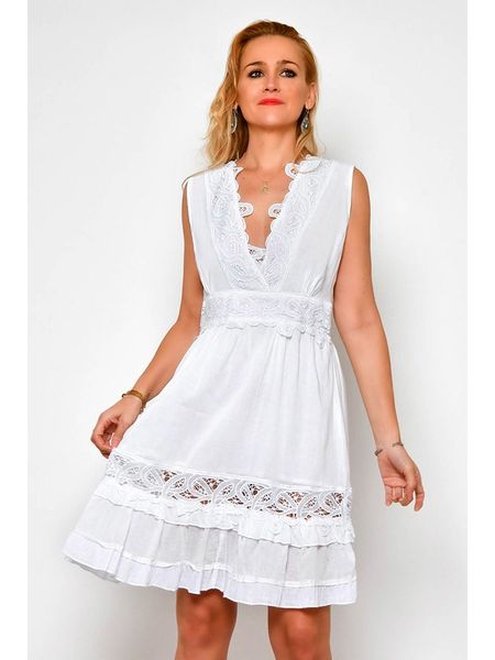 sukienki z dekoltem na plecach sukienki bez kołnierzyka białe sukienki sukienki h.h.g. odzież damska limango.pl sukienki mini sukienki ze sklepu limango.pl sukienki bez rękawów sukienki z falbankami odzież damska h.h.g.